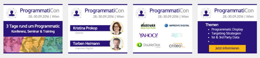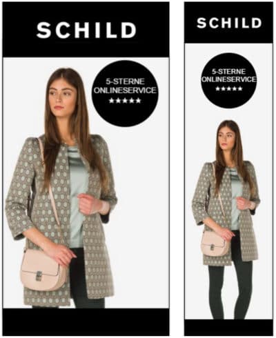 Selbst wenn man “nur” die IAB-Standardformate an Werbemitteln wie das UAP (Universal Ad Package) und eine HPA (Half Page Ad) einbucht, sind das schon vier höchst unterschiedliche Werbemittelformate (von quadratisch über hoch bis hin zu quer). Da müssen die Bilder immer optimal passen, was bei händischer Optimierung zu enormen Aufwand führt. Im folgenden ein Beispiel, das auf die gleichen Bilder zurückgreift, die ohnedies im Onlineshop hinterlegt sind, und für beide Bannerformate optimal skaliert und positioniert werden – eine unglaubliche Ersparnis in der Produktion: