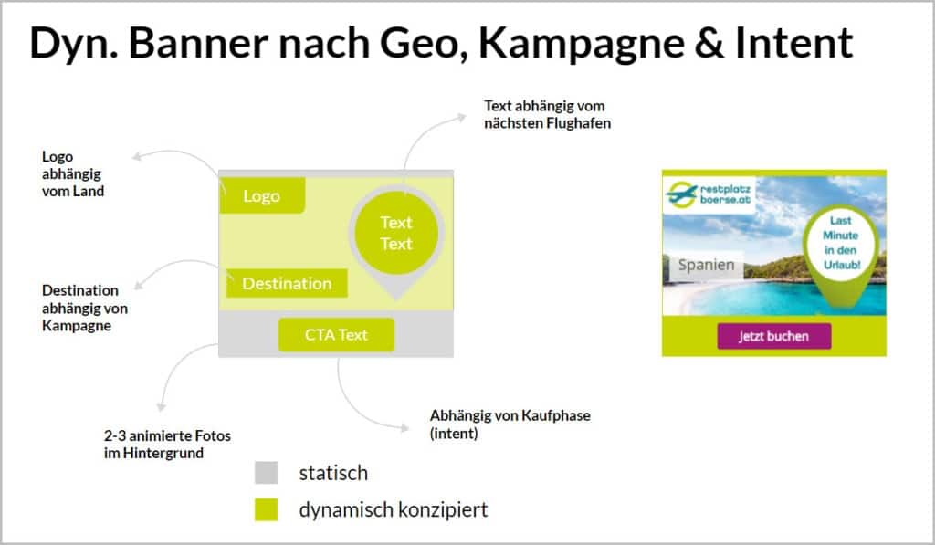 Für die Restplatzbörse haben wir ein Bannertemplate entworfen, das verschiedene dynamische Elemente enthält, die wiederum von unterschiedlichen Triggern abhängig sind.