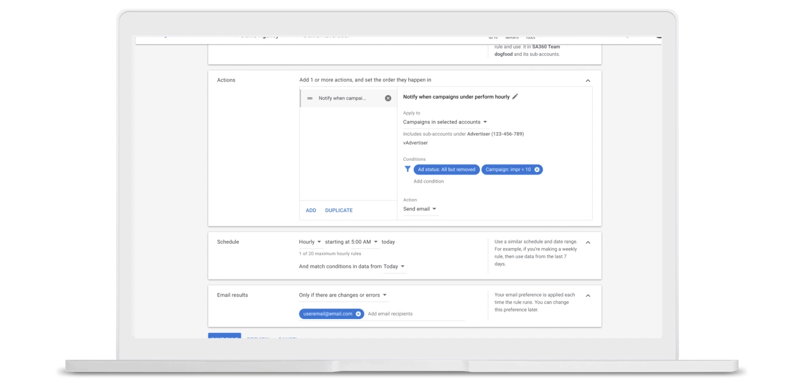 Das bedeutet z.B. dass man aus SA360 für Kampagnentypen wie Performance Max oder Google Display Kampagnen das ganze Management und Reporting umsetzen kann. Auch Microsoft DSA oder Yahoo! Dynamic Ads for Search werden in Zukunft unterstützt. Zur Optimierung des Workflows zählt auch das Audience Management via SA360. Ankündigungen, die teils schon Jahre zurückliegen werden endlich Realität.