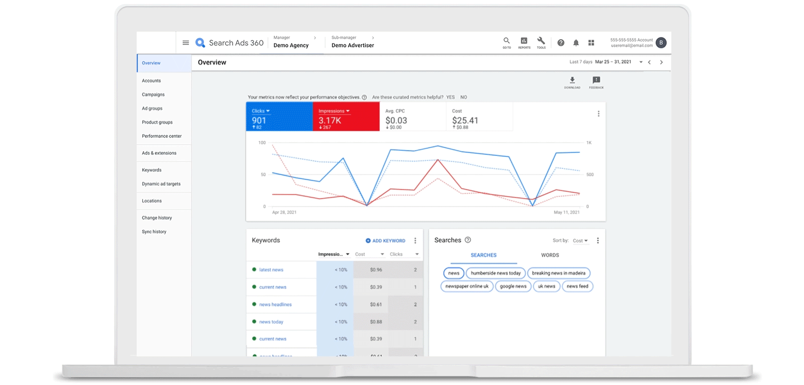 SEM steht in diesem Zusammenhang für Search Engine Management und bietet eine Fülle an zusätzlichen Möglichkeiten. Die neue Search Ads 360 sticht vor allem durch diese drei wesentlichen Kernbereiche hervor:
