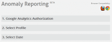 Anomaly Detection ist ein Produkt das man ganz einfach und praktisch mit seinem Google Konto verbindet und anschließend sofort zur Analyse verwenden kann. Nachdem Sie ein Profil in Ihrem Konto ausgewählt haben, können Sie auch die zu vergleichenden Zeiträume auswählen. Anomaly Detection funktioniert nur mittels Vergleichen von Zeiträumen, da sich so gravierende Veränderungen in den Daten optimal feststellen lassen.