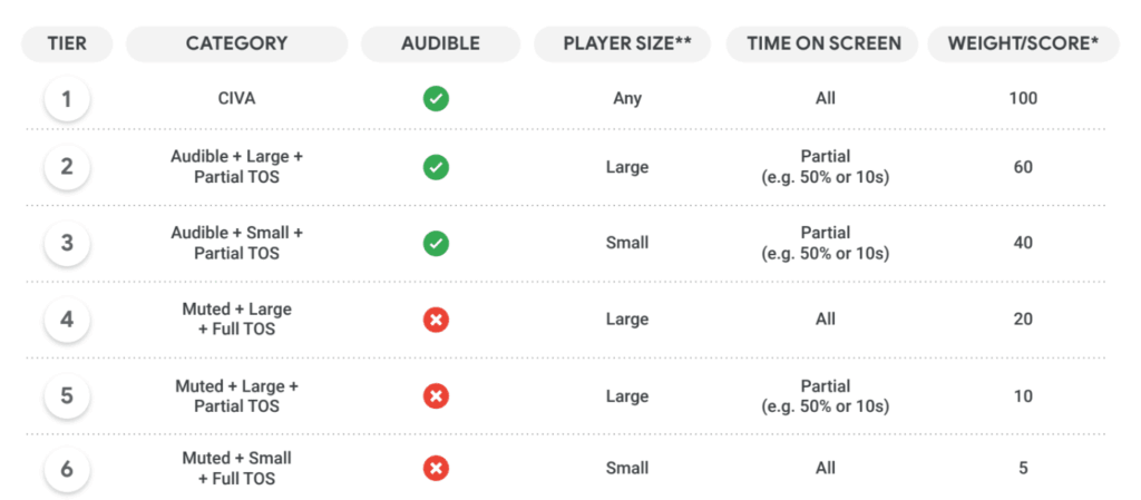 - bei CIVA Optimierung findet keine Qualitätsunterscheidung innerhalb von non-CIVA Inventar statt. Faktoren wie Audible vs. muted, large vs. small Player, Partial vs. Full time on Screen beeinflussen die Qualität maßgeblich.