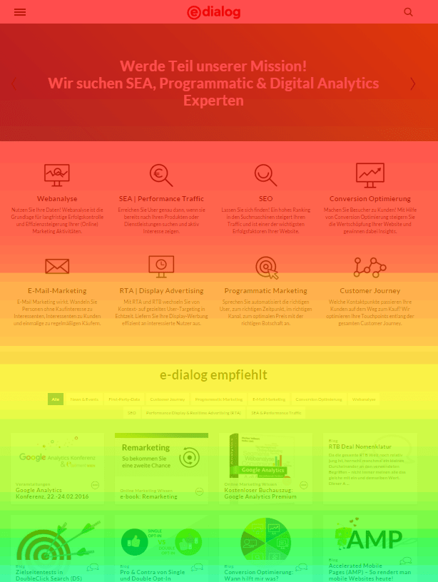 Dadurch lässt sich leicht erkennen, ob Call-to-Action Elemente auch tatsächlich von der Mehrheit der Besucher gesehen werden oder ob ein Blog-Artikel zu lange ist und kaum ein Besucher diesen bis zum Ende liest.
