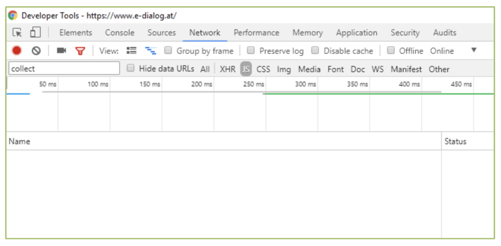Wie ist das möglich? Der Preview Mode des GTMs zeigt an, dass Google Analytics Tags ausgeführt werden. Der Network Tab innerhalb der Dev Tools hingegen zeigt keine gesendeten Daten an Google Analytics an. Des weiteren zeigt auch der Echtzeit Bericht in Google Analytics keine ankommenden Daten an.