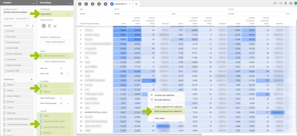 Die Boheme Festival-Looks Promotion ist besonders für Frauen zwischen 25 und 44 Jahren attraktiv. Für die Marke ein wichtiger Insight in den Lifestyle der Zielgruppe! Nun ist Customized Targeting möglich und User können personalisiert angesprochen werden. Dies erhöht die Relevanz der Werbebotschaft um ein Vielfaches, was sich wiederum positiv auf die Kampagnen Performance auswirkt. Das heißt aus diesen Daten wird per Rechtsklick (!) eine neue Audience erstellt und in Google Ads (vormals Google Adwords) für Remarketing Zwecke verwendet!