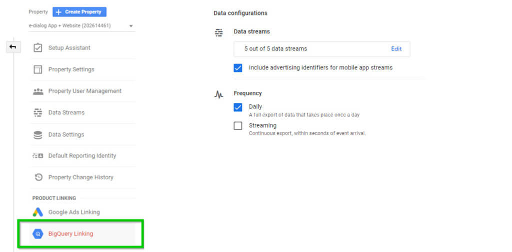 Google Analytics 4 mit BigQuery verknüpfen