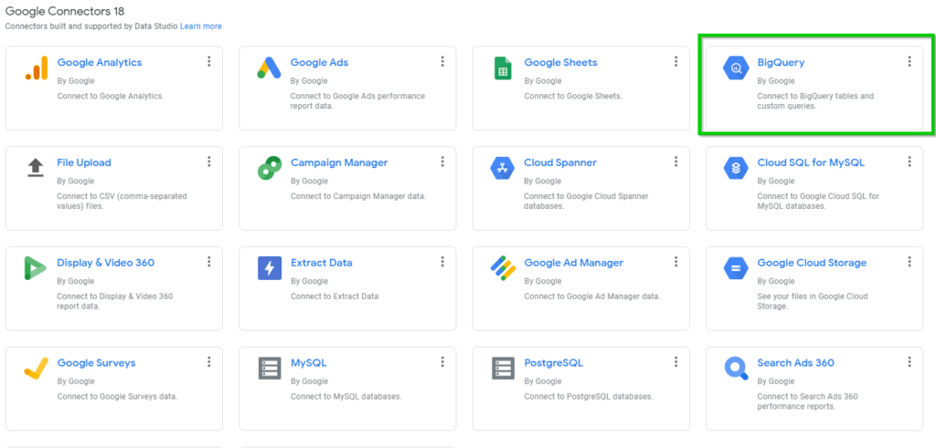 BigQuery mit Datastudio verknüpfen