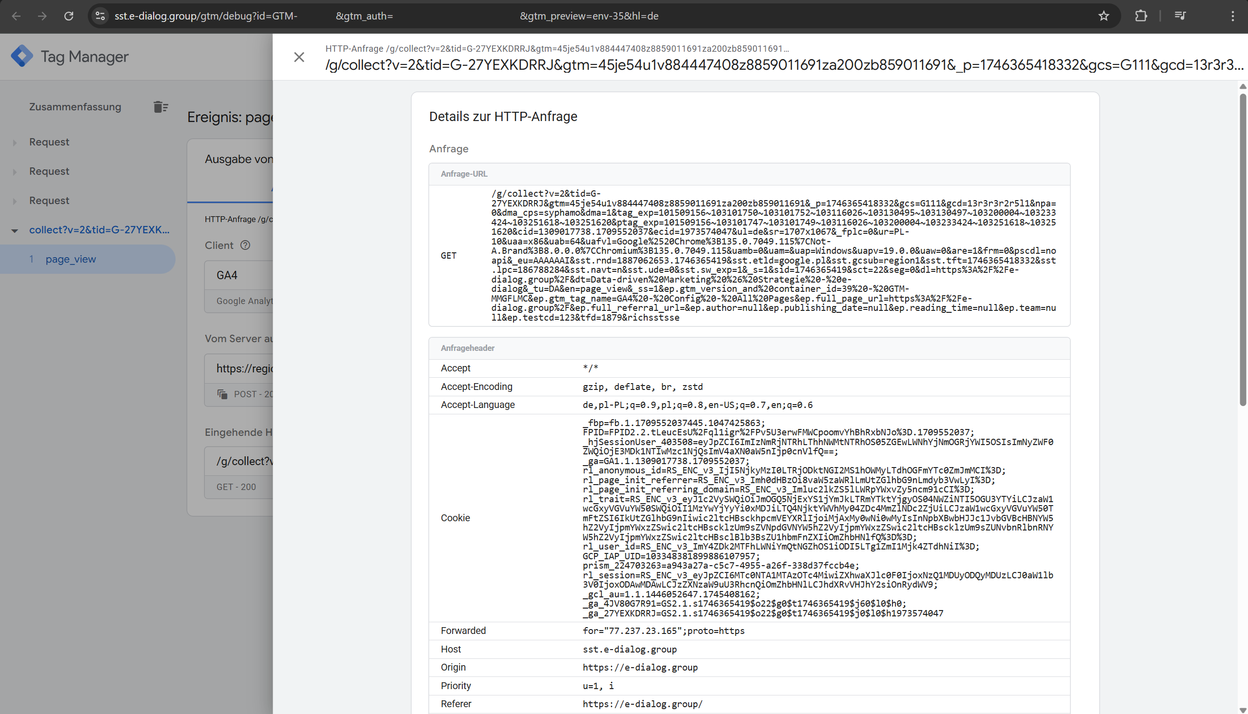 Dank des Server Side GTM Vorschaumodus Fensterns kann jeder Tracking Aufruf überprüft und validiert werden.