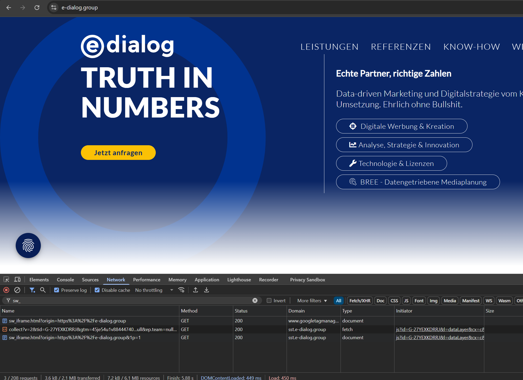 Der Nachteil ist aber, dass die Analyse der Tracking-Aufrufe über die Netzwerk-Konsole nicht mehr so wie gehabt möglich ist.