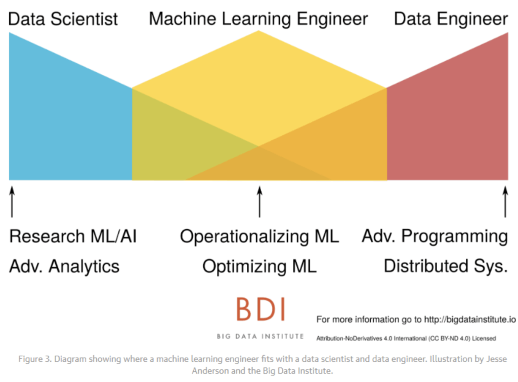 Um diese Lücke (s. Bild oben) zwischen dem akademischen Mindset und dem Need etwas Handfestes herzustellen zu füllen, entwickelt sich zurzeit ein neuer Typus von Engineers. Dieser ist meist in den USA vorzufinden. Der Titel dieser Profession lautet: Machine Learning Engineer.