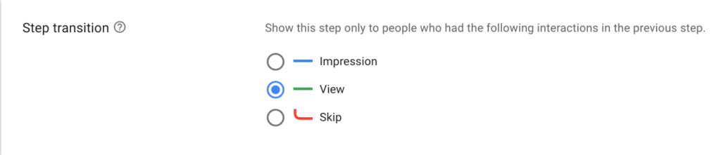 Beim nächsten Schritt (2. Video), muss angegeben werden, was für eine Interaktion passieren muss, damit das 2. Video abgespielt wird: hier kommen die bereits angesprochenen 3 Möglichkeiten ins Spiel: Impression, View oder Skip.